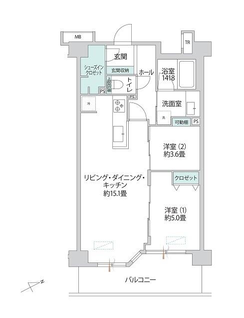 | 間取り詳細 | LDK約15.1帖、洋室約5.0帖、洋室約3.6帖 |